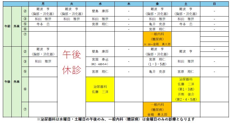 10月15日(水)より毎週水曜日、難波医師休診となります