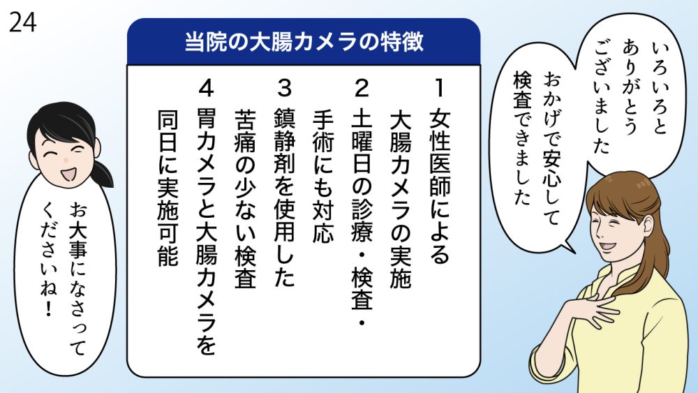 このページでは大腸カメラ検査についてよくわかるマンガで紹介いたします。